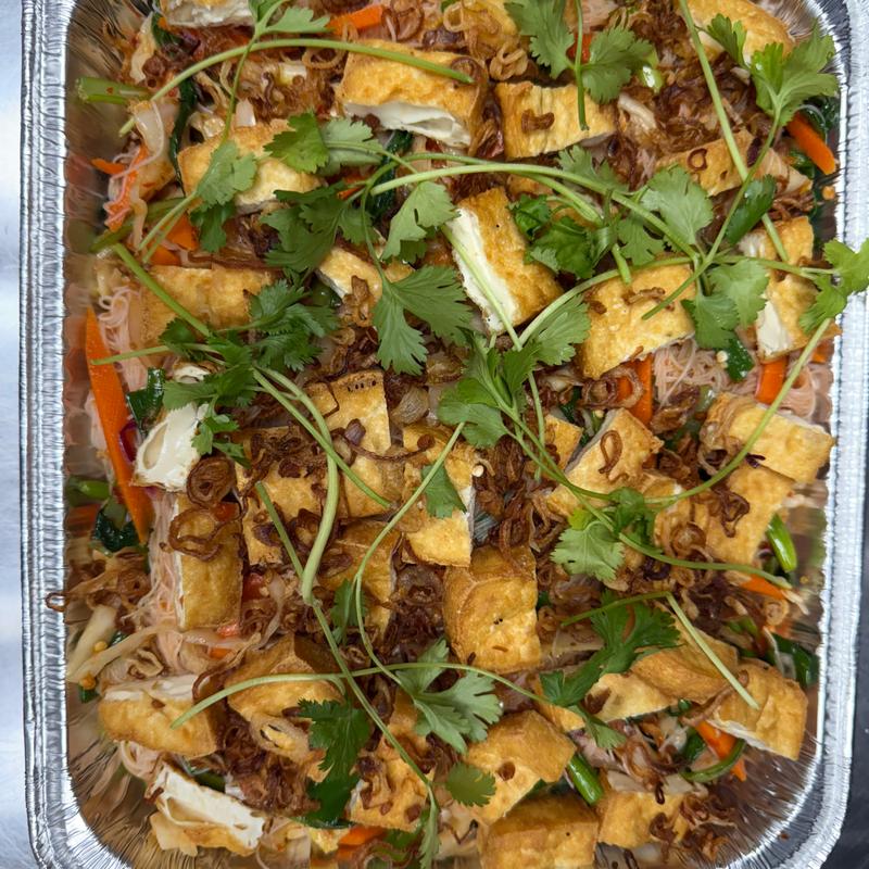 Fried tofu, steamed pork belly, fish paste, vermicelli, lettuce, mint leaves, cucumber, carrot & daikon pickle. Served with special shrimp sauce