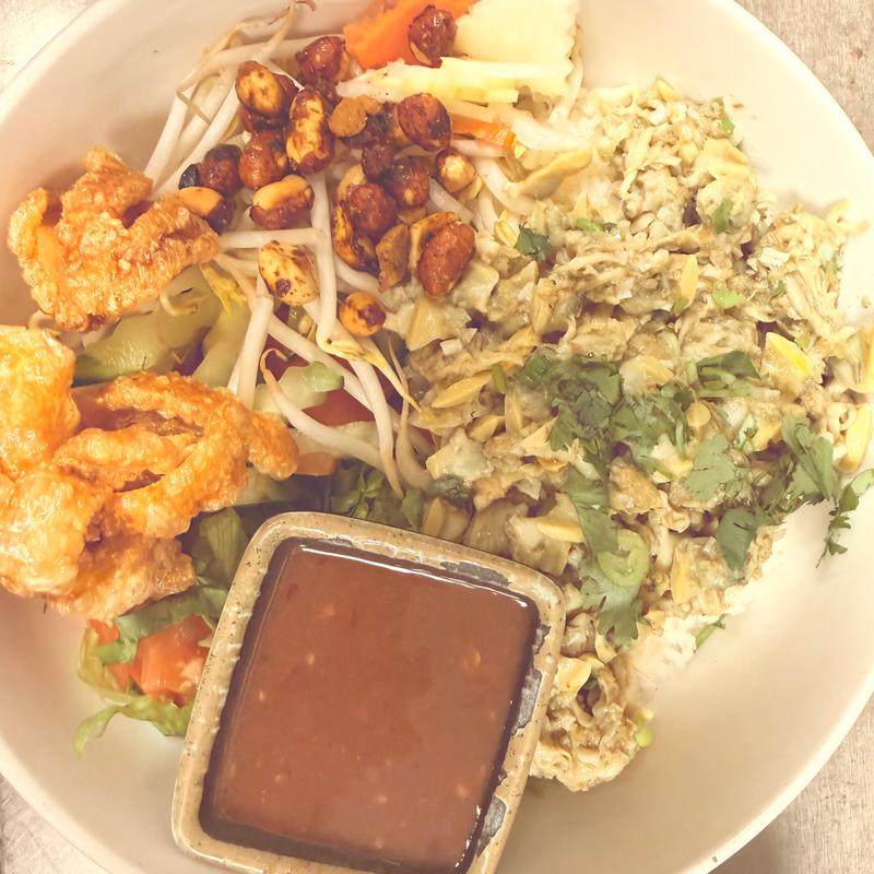 Duck salad with bamboo shoot noodle soup