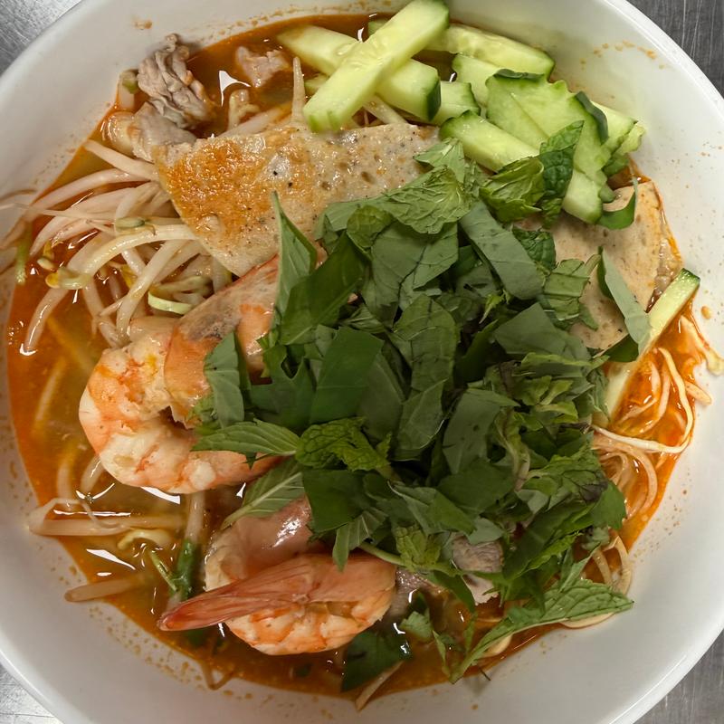 Steam beef shank, vermicelli, lettuce, mint leaves, cucumber, carrot & daikon pickle. Served with special shrimp sauce